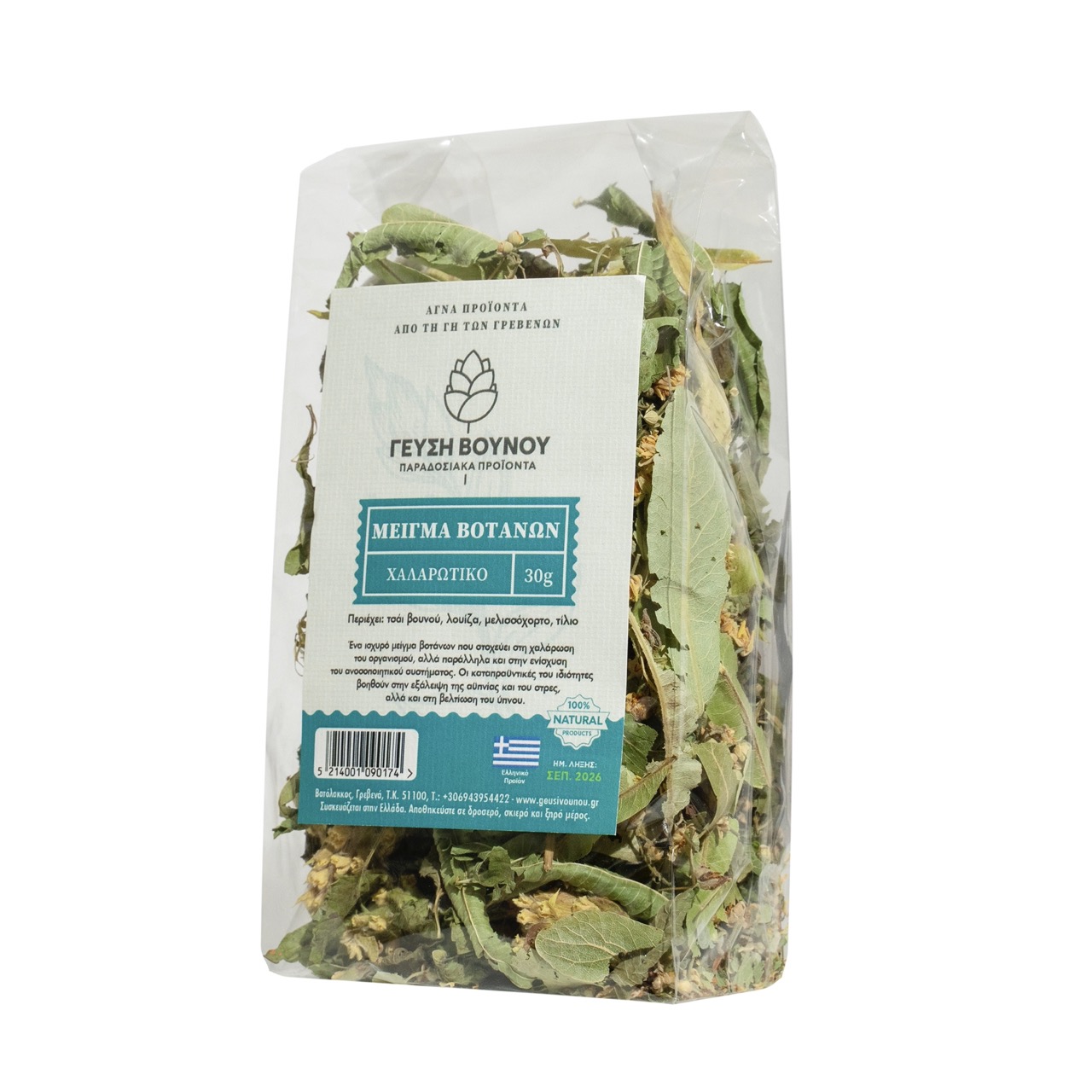Μείγμα για χαλαρωτικό τσάι φυσικών αποξηραμένων βοτάνων σε σακουλάκι 30grm